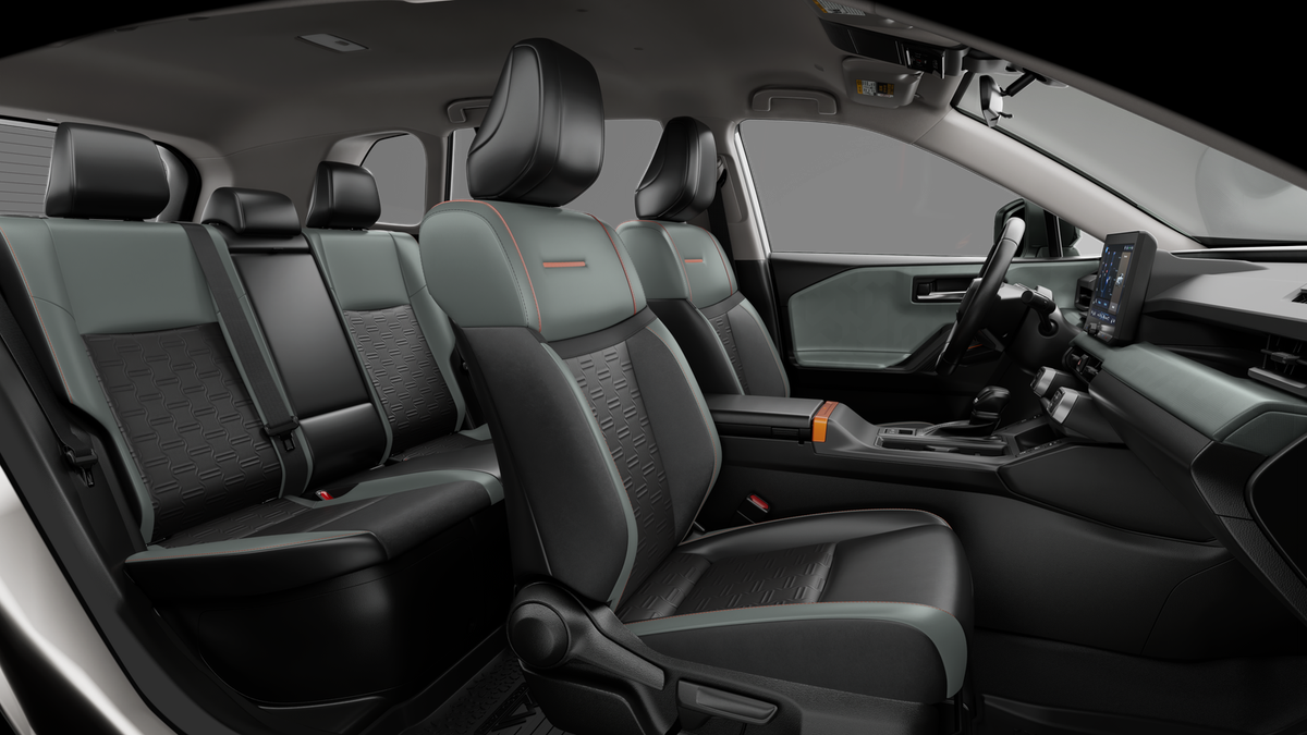 - Uniquely patterned perforated soft-touch door and dash panels with interior red orange accents